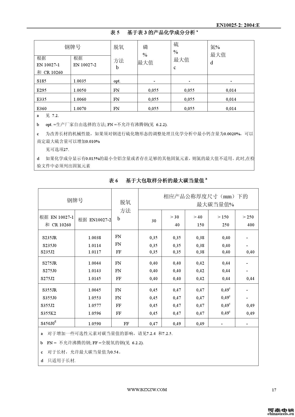 EN10025-2:2004:E 非合金结构钢的交换条件