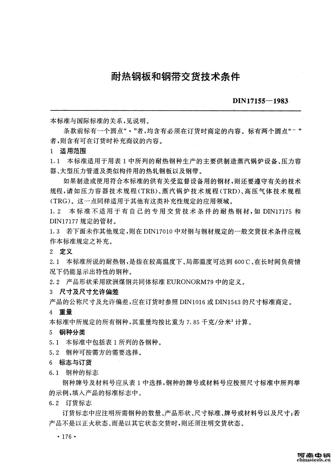 耐热钢板和钢带交货技术条件 DIN17155---1983
